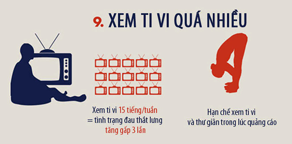 Người xem TV quá nhiều đồng nghĩa với việc ngồi lâu hơn. Điều này ảnh hưởng rất lớn đến cột sống của bạn. Thống kê cho thấy người xem TV quá nhiều cũng kéo theo thói quen lười vận động.