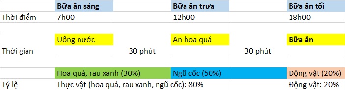 Tổng quan các bữa ăn trong ngày theo phương pháp của bác sĩ Shinya