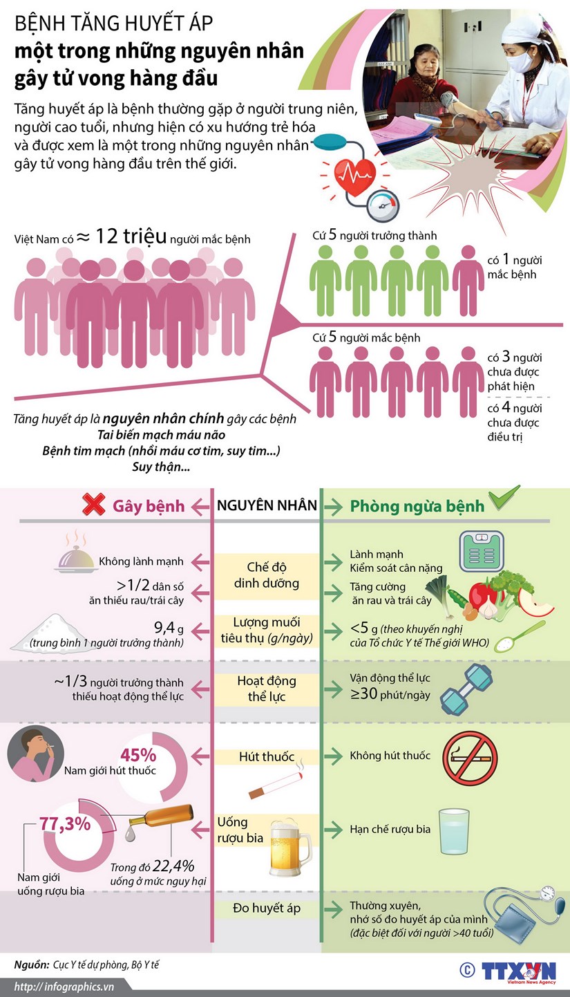 Tăng huyết áp là bệnh thường gặp ở người trung niên, người cao tuổi, nhưng hiện có xu hướng trẻ hóa và được xem là một trong những nguyên nhân gây tử vong hàng đầu trên thế giới.