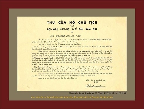 Bức thư có chữ ký của Chủ tịch Hồ Chí Minh gửi Hội nghị cán bộ y tế đầu năm 1955.