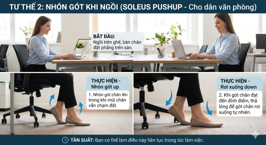 Tư thế 2: Nhón gót khi ngồi (Soleus Pushup - Cho dân văn phòng)