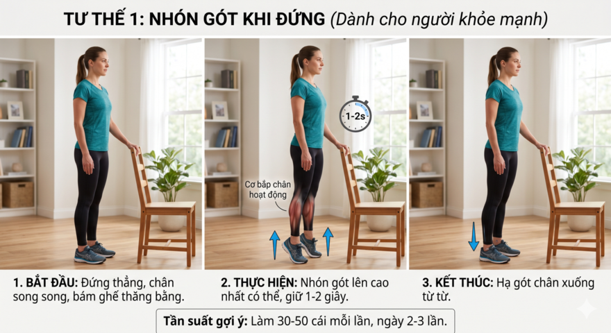 Tư thế 1: Nhón gót khi đứng (Dành cho người khỏe mạnh)